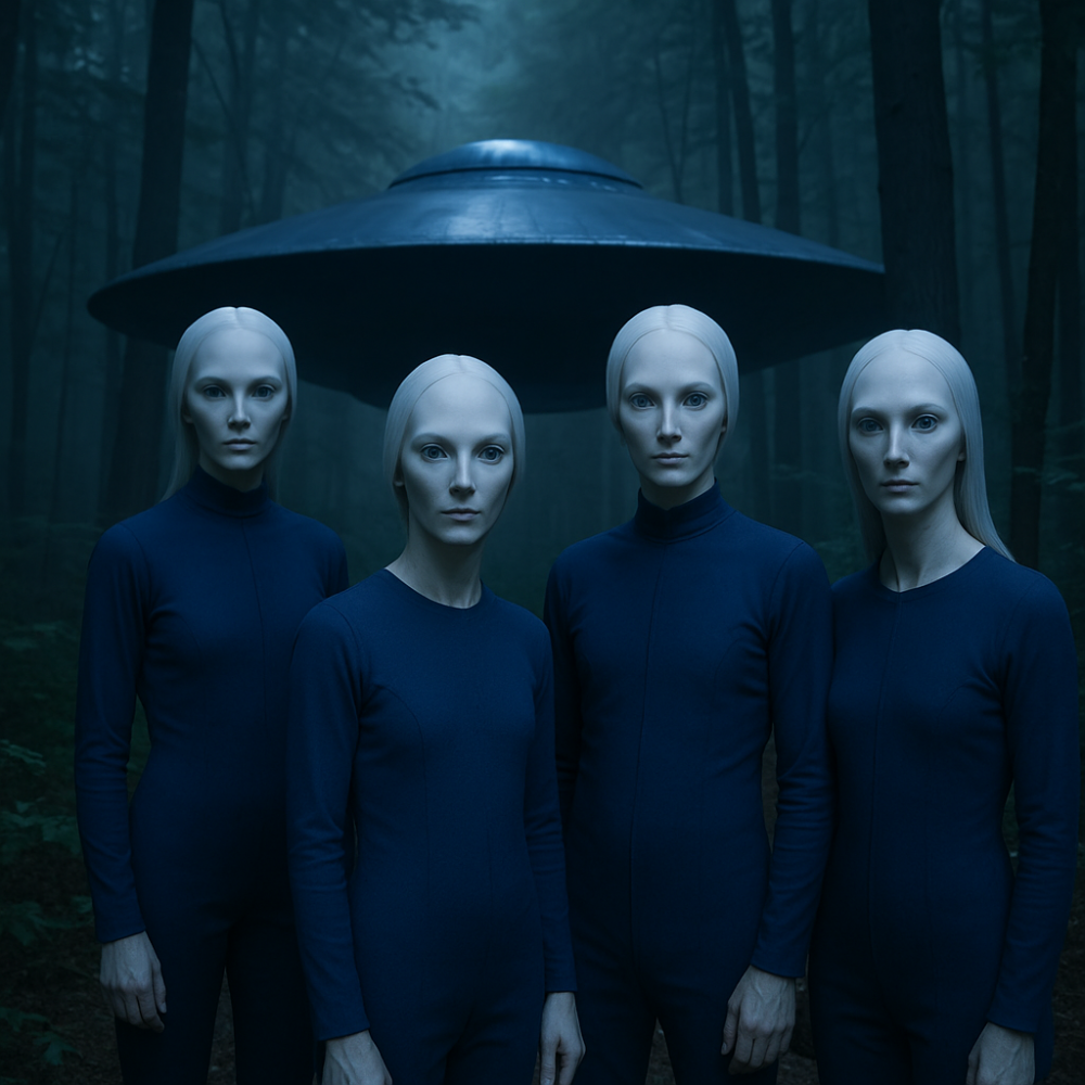 These aliens stand out due to their almost divine human-like appearance, unlike your typical grey, bug-eyed extraterrestrials. It’s like someone mixed celestial elements with a splash of human traits, creating an image that’s both eerily familiar and otherworldly.